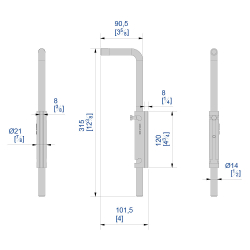 Removable pin, rod diameter 14 mm.