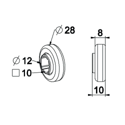 Outer diameter 28 mm, inner diameter 12 mm, and can be used with a 10 mm square shaft.