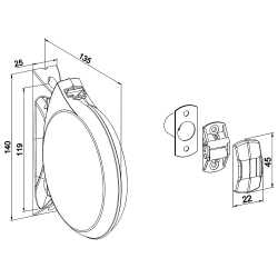 Round white strap winder, equipped with a grey strap 5.5 m long and 14 mm wide, supplied with its white vertical guide.