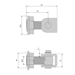 Weld-on hinge with adjustable M22 screw-on bracket for swing gate.