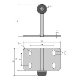 Butoir de fin de course pour portails coulissants monté sur platine 120 x 72 mm.