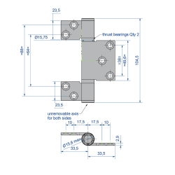 Charnière en acier inoxydable axe de 10 mm dimension 67 x 104,5 mm.