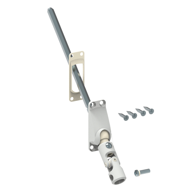 Sortie de caisson 60° embase étroite avec tige 6 pans de 7 mm longueur 315 mm pour manivelle de diamètre 12 mm.