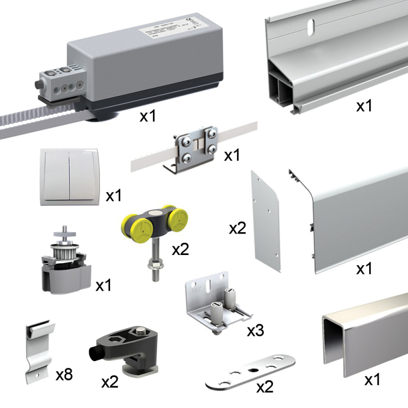 Pack complet permettant le déplacement motorisé d'un volet coulissant, 1 vantail.