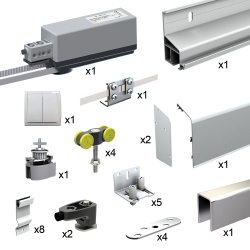 Pack complet permettant le déplacement motorisé de vos volets coulissants, 2 vantaux.