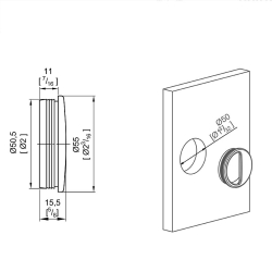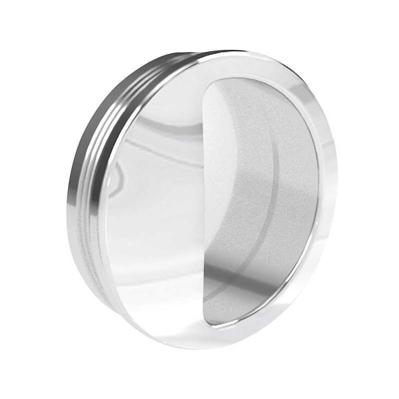 Poignée cuvette ronde à encastrer, en plastique argenté, pour porte coulissante.
