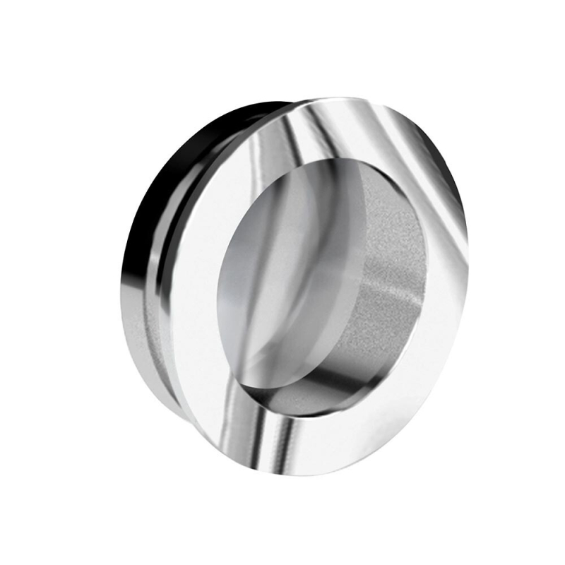 Poignée cuvette ronde à encastrer, en métal chromé, pour porte coulissante.