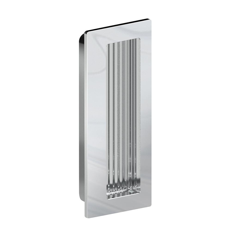 Poignée cuvette rectangulaire à encastrer, en métal chromé, pour porte coulissante.
