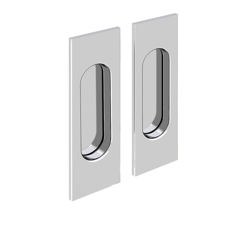 Lot de 2 poignées rectangulaires à encastrer en acier finition chromé.