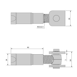 Gond à sceller avec chape à souder M22 pour portail battant.
