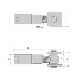 Gond à sceller avec chape à souder M20 pour portail battant.