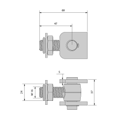 Gond à souder avec chape réglable à souder M16 pour portail battant.