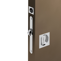 Serrure à crochet à encastrer avec poignées carrées et tire-doigt pour porte coulissante.