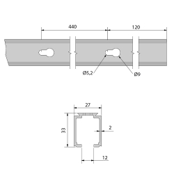 Rail simple de 1,95 m, percé tous les 0,44 m.