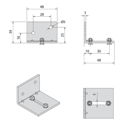 Support équerre pour fixation murale de rails SLID'UP 1200 jumelés, livré avec vis, écrous et rondelles.