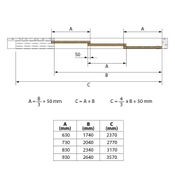 Système avec un recouvrement de 50 mm entre les panneaux.