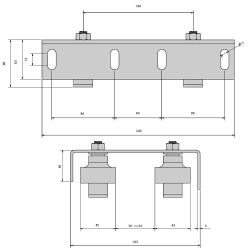 Verstelbare bovenste geleider, met 4 nylon olijven Ø45 voor schuifpoort van 30 tot 62 mm dikte.