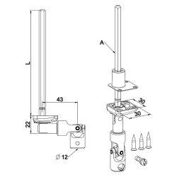 Verticale kastuitgang met 6-kantige stang van 7 mm in verzinkt staal, lengte 175 mm voor een slinger met een diameter van 12 mm.