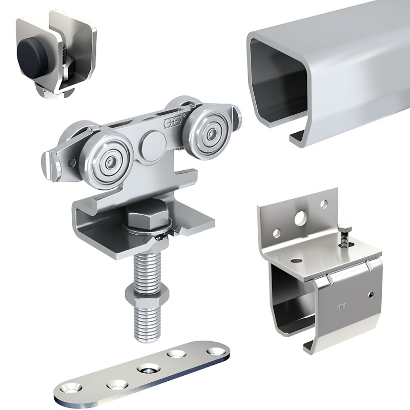 Systeem schuif SLID'UP 2000 voor 1 buitendeur max. 27 mm - rail 1,95 m in gegalvaniseerd staal - hangend schuifsysteem.