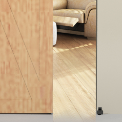 Zwarte metalen ondergeleider type Barn Door voor schuifdeur.