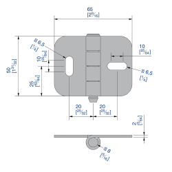 Charnière en acier zingué axe de 8 mm dimension 65 x 50 mm.