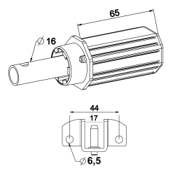 Embout d'axe pour tube octogonal de 40 mm diamètre 16 mm avec coussinet.