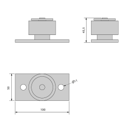 Guide monté sur cage à rouleaux à olive sur platine à visser pour profil U 50 x 60.