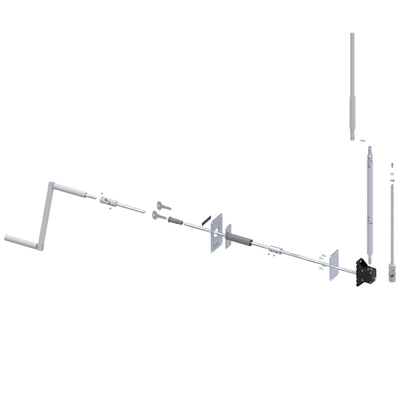 - 1 tige H7 longueur = 580 mm + 1 genouillère pour liaison barillet/manivelle à travers le mur