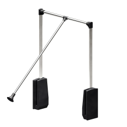 Elévateur de penderie en acier avec bras télescopique réglable en largeur (83 à 115 cm), pour dressing de largeur 92 à 124 cm.