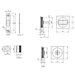 - 1 poignée carrée avec système de condamnation, 57 x 57 mm