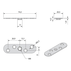 Platine pour système coulissant SLID'UP 1200 pour fixation sur chant avec trou maraudé Ø M8.