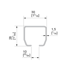 Rail en acier inoxydable section 30 x 28 mm en longueur de 3 m pour utilisation intérieure ou extérieure.