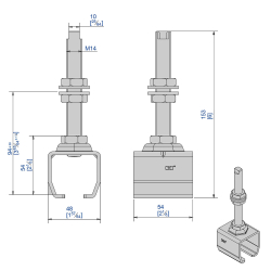 Support enveloppant avec tige longue en acier galvanisé pour systèmes coulissants SLID'UP 2000.