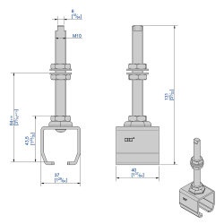 Support enveloppant avec tige longue en acier galvanisé pour systèmes coulissants SLID'UP 2000.