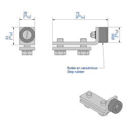 Butée de rail en caoutchouc sur platine en acier zingué pour systèmes coulissants SLID'UP 2000.