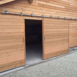 Con un sistema de corredera de montaje en superficie, el perfil se fija a la pared y permanece visible. La puerta se desliza por delante de la pared, por lo que sigue siendo visible desde el lado en el que está instalada, pero ahorra mucho espacio en comparación con una puerta batiente convencional. El riel y los marcos pueden ocultarse detrás de un panel saliente, o dejarse a la vista para un interior de estilo industrial.