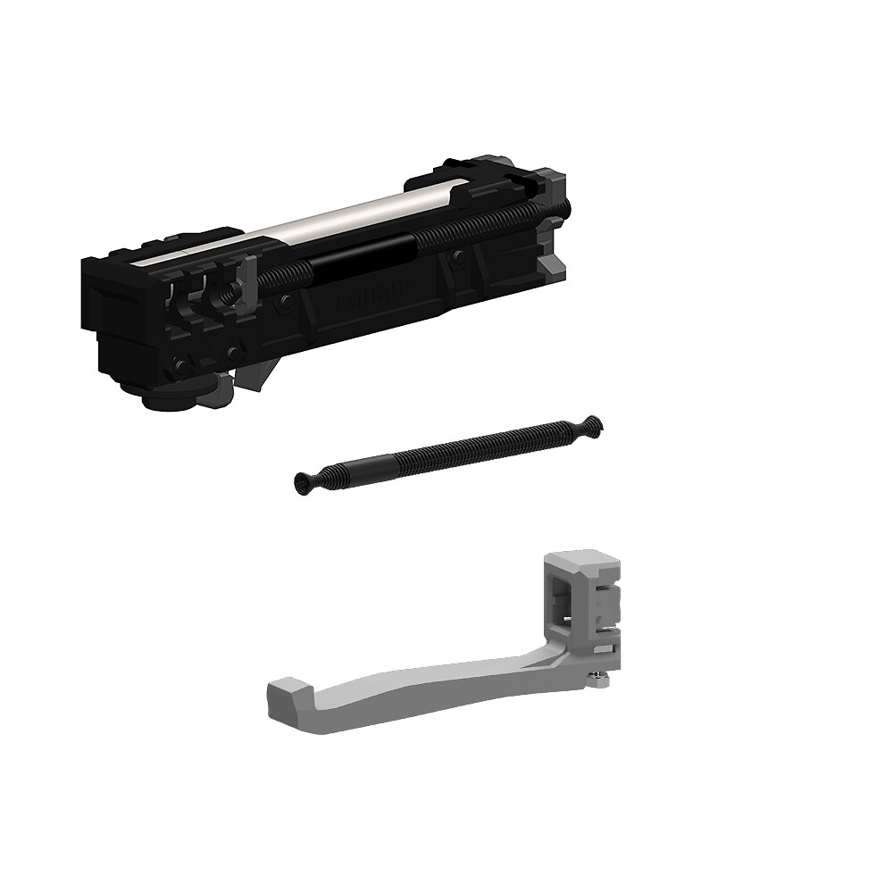 Amortiguador entregado con 2 juegos de muelles:– 1 juego de muelles para puertas entre 20 y 40 kg (anilla blanca)– 1 juego de muelles para puertas entre 40 y 80 kg (anilla negra, ya montado)