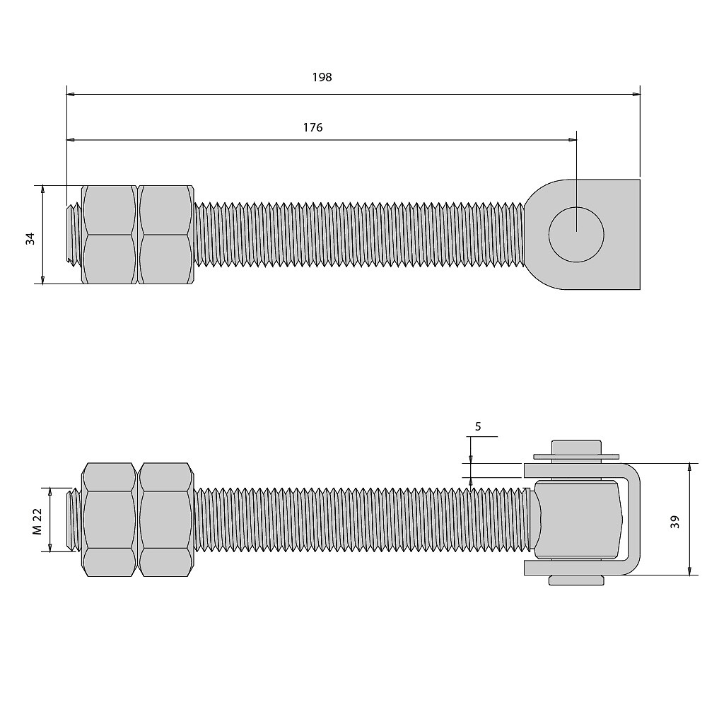Gozne largo para atornillar con placa para atornillar M22 – 200 kg