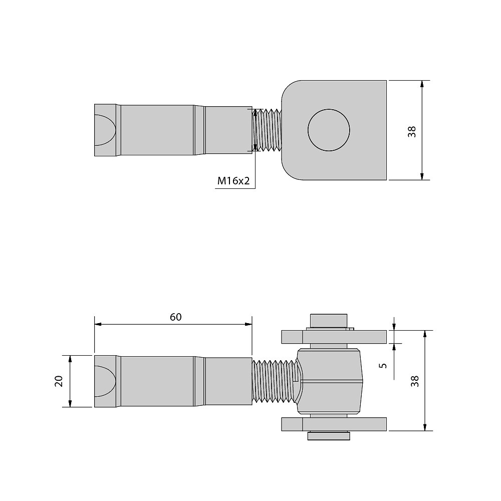 Bisagra para empotrar con orejeta para soldar M16 para puerta batiente.