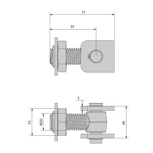 Bisagra para soldar con soporte ajustable M20 para puerta abatible.