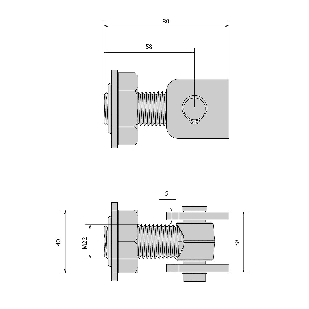 Bisagra para soldar con soporte ajustable para soldar M22 – 200 kg