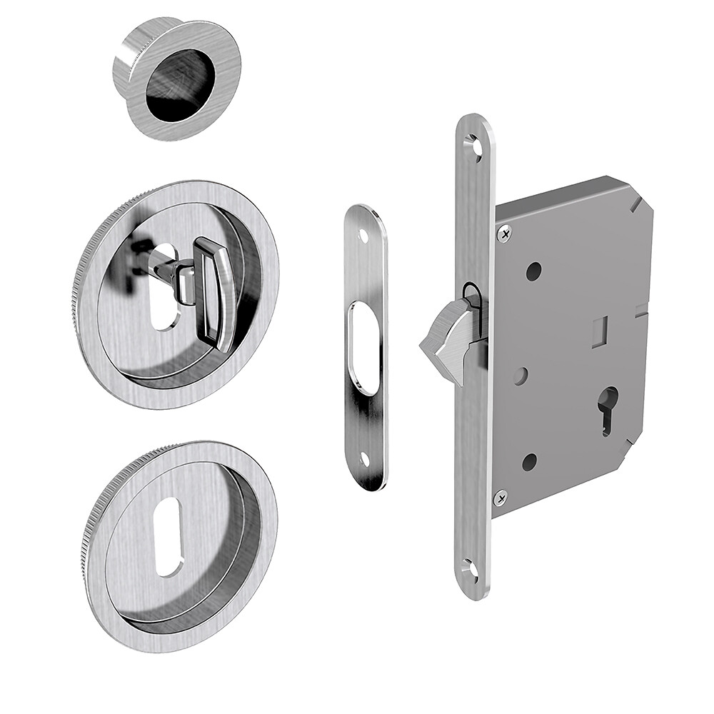 Kit cerradura con llaves, tirador ovalado, acero acabado dorado