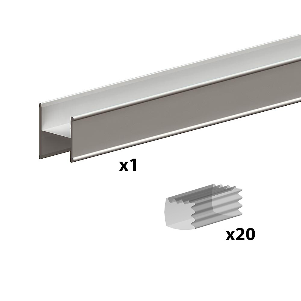 Kit perfil en H SLID’UP 280 para puerta de 18 mm – L = 2000 mm – plata.