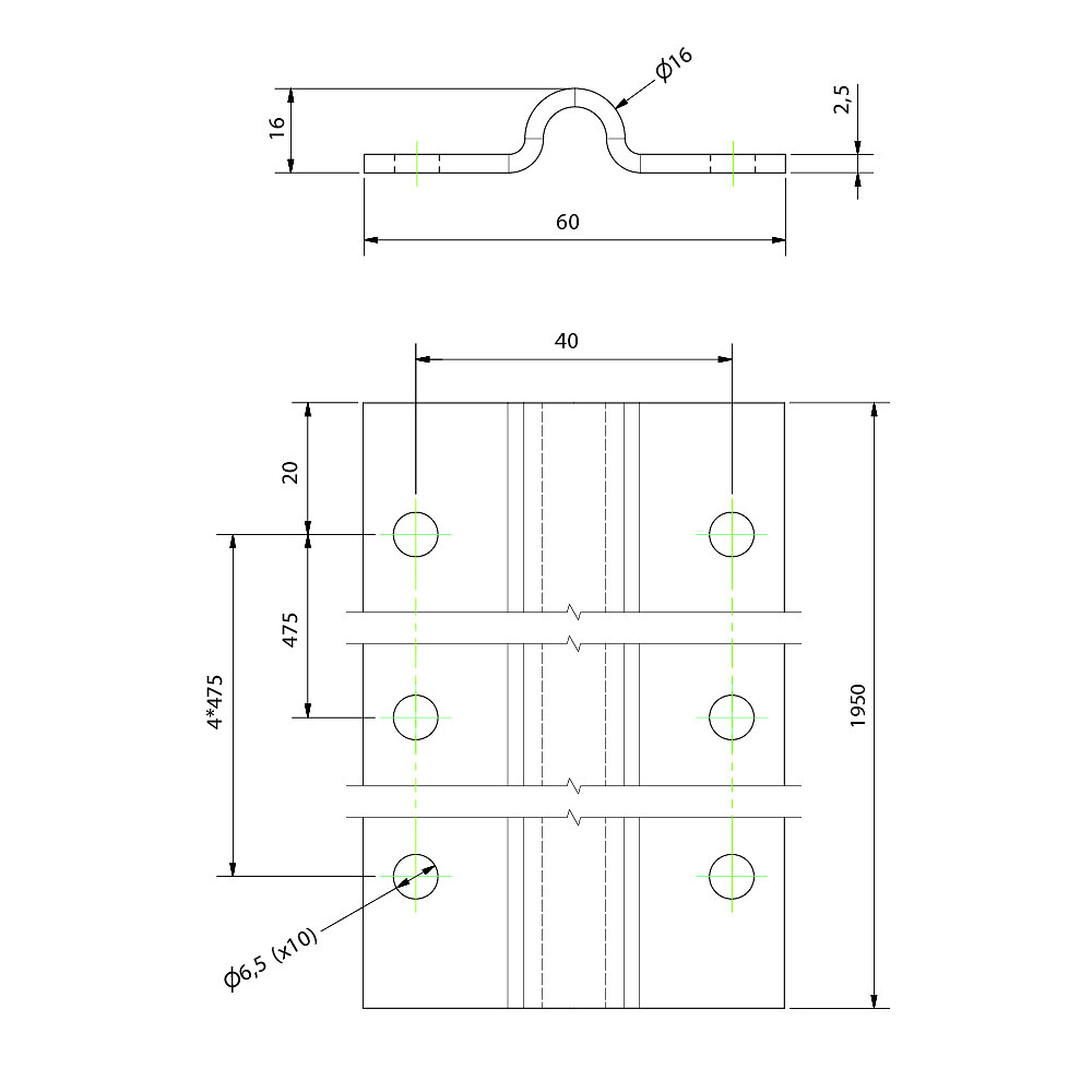 Perfil para atornillar 1,95 m para rueda con garganta redonda Ø16 mm – cancela corredera 800 kg máx.