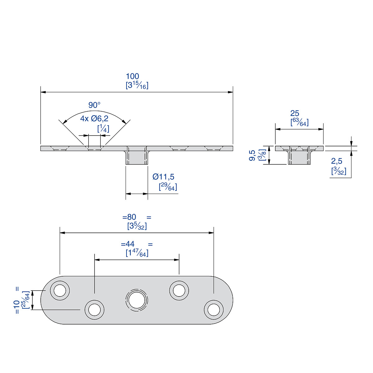 Platina de acero galvanizado para sistemas correderos SLID’UP 2000 para fijación en canto con agujero roscado Ø M10.