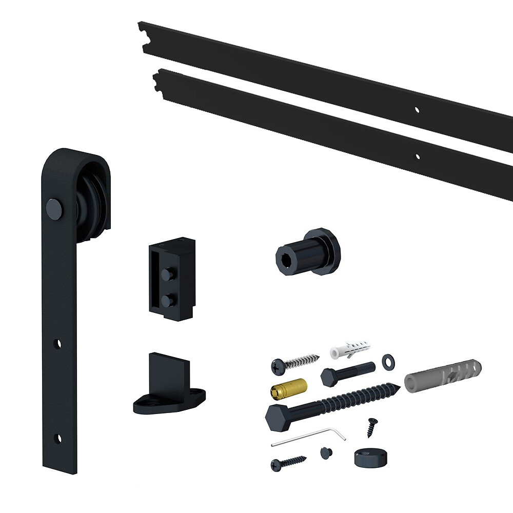 Este sistema tipo “puerta de granero” o “puerta de taller” es muy fácil de montar y le permitirá posicionar su puerta en cualquier posición con total simplicidad.