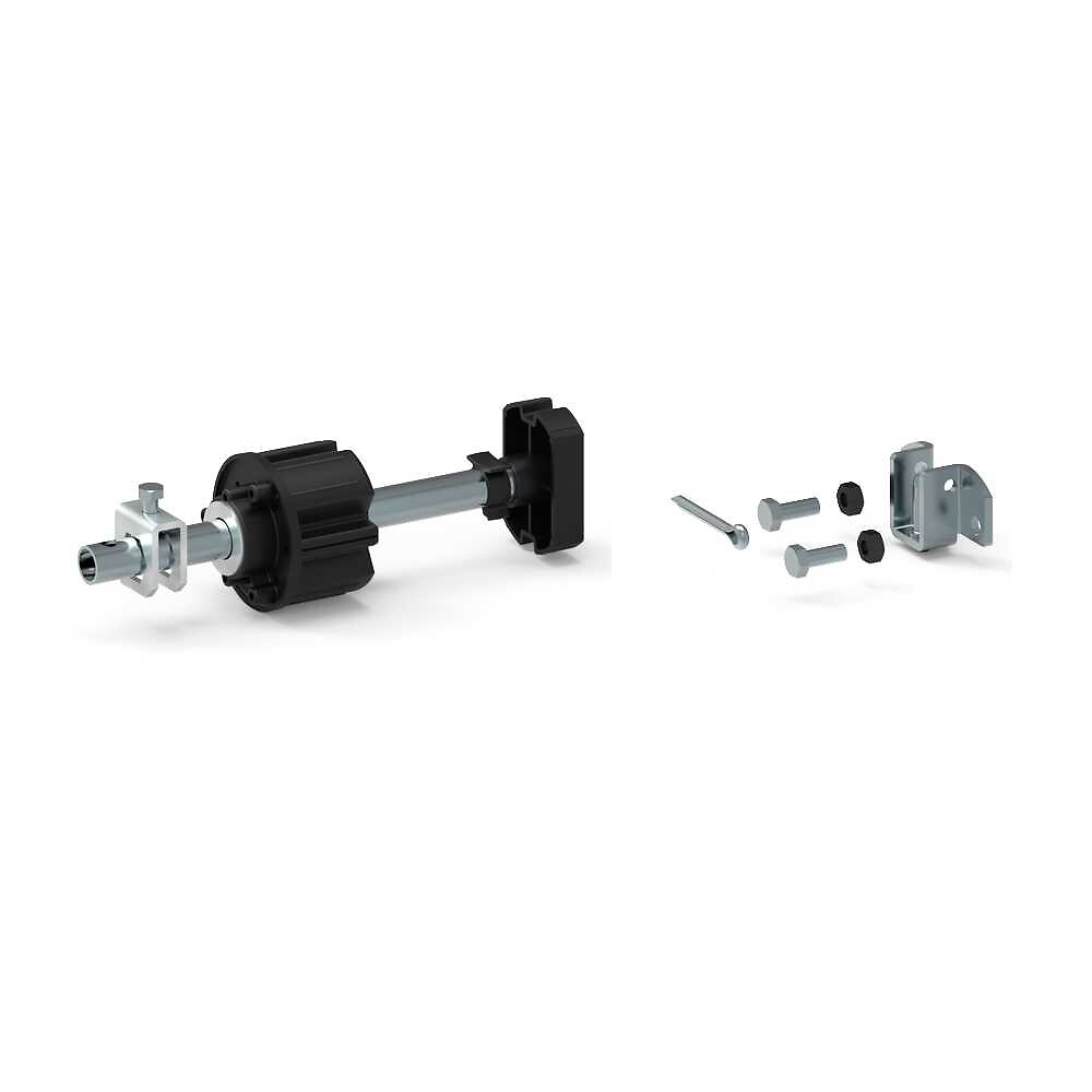 Tándem ajustable para tubo ZF 64 con cojín. Se monta en el lado opuesto a la maniobra. Equipado con una abrazadera de bloqueo después del ajuste del desplazamiento. Capacidad de peso con desplazamiento máximo de 90 mm: 17 kg por extremo.