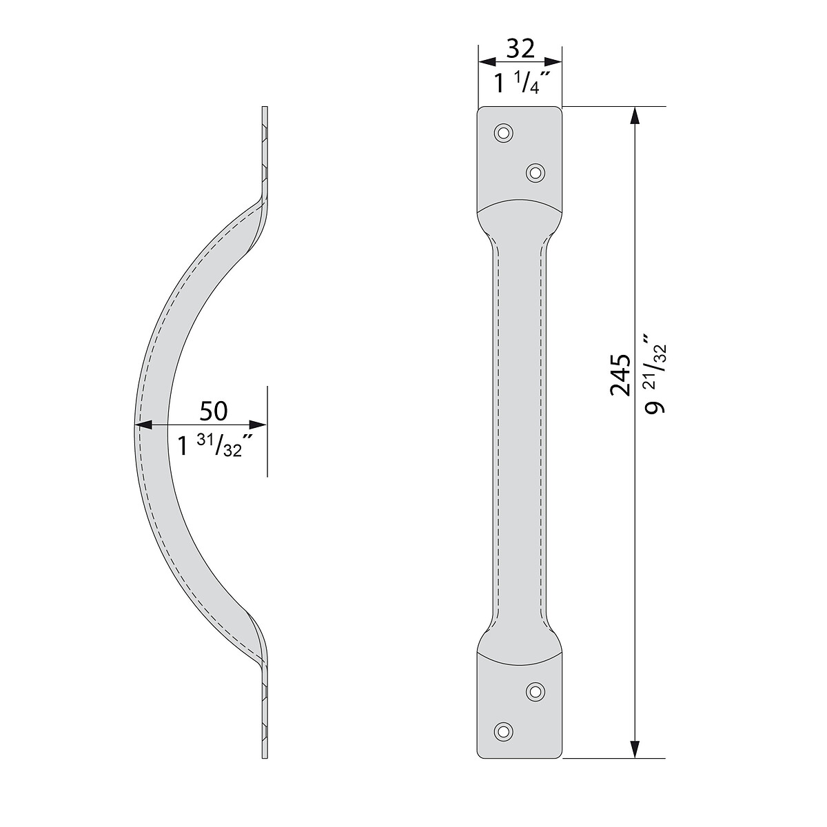 Manilla de acero para atornillar con 4 puntos de fijación.