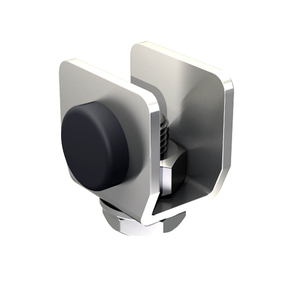 Tope de caucho sobre placa de acero galvanizado para sistemas correderos SLID’UP 2000.